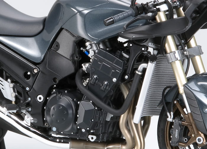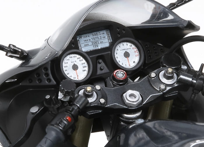 This is a 1/12 scale plastic assembly model kit. ★Length: 180mm, Width: 74mm. ★Accurately reproduces the eye catching aero dynamical form. ★The front cowl and the 6 front lights have been realistically reproduced. ★The compact 1352cc four-stroke, DOHC, water-cooled inline four engine has also been precisely rendered. ★Winker reflectors and muffler are metal plated. ★Front and rear tires are made of real solid rubber coming with tread pattern. ★Cowlings can be attached/removed using precision screws. ★Metal coil spring is used for the rear suspension. ★Display stand included. ★American, European, and Malaysian specifications can be created.