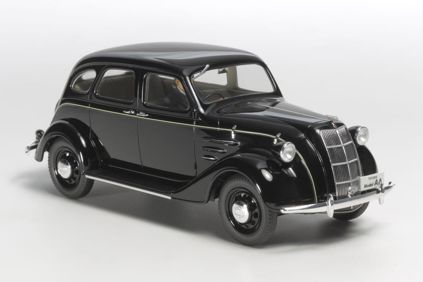 Toyota stała się głównym graczem na światowym rynku motoryzacyjnym, ale podobnie jak inne firmy miała skromne początki. Tamiya odtwarza pierwszy „produkcyjny” samochód Toyoty, znany jako Model AA, który został zbudowany przez sekcję samochodową firmy Toyoda Automatic Loom Works. Model AA był ich pierwszym samochodem produkcyjnym, wypuszczonym w 1936 r. I ponieważ nadal był to wewnętrzny dział Toyody, samochód ten nosi nieznane końcówki „–da” na nazwie marki (w 1937 r. Dział motoryzacyjny stał się odrębną jednostką i zmienił się w nazwa Toyota używana do dziś). Model AA był sprzedawany jako projektowany i produkowany w kraju konkurent dla samochodów amerykańskich, jego stylowe i płynne nadwozie zamontowane na ramie drabiny i cały pakiet był napędzany 3,4-litrowym silnikiem rzędowym 6. Około 1400 AA opuściło fabrykę w ciągu 6 lat jej produkcji, co stanowi ważny pierwszy krok w tworzeniu marki Toyota.
