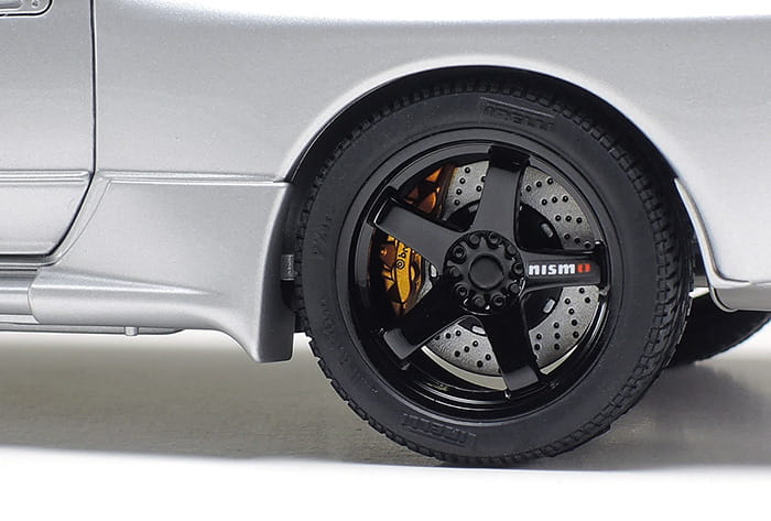 | About the Model ★1/24 scale. Length: 190mm, width: 75mm. ★The model recreates the Skyline GT-R (R32) with customizing parts centered around Nismo items such as 5-spoke wheels, spoiler and mud guards. ★Realistic interior features parts for Nismo 3-spoke steering wheel, plus more! ★Metal-plated parts offer a highly realistic finish for the muffler, muffler end and turbo system air inlet pipes. ★Metal transfers depict Nismo and GT-R emblems, plus mirror surfaces. ★Features solid synthetic rubber tires. |