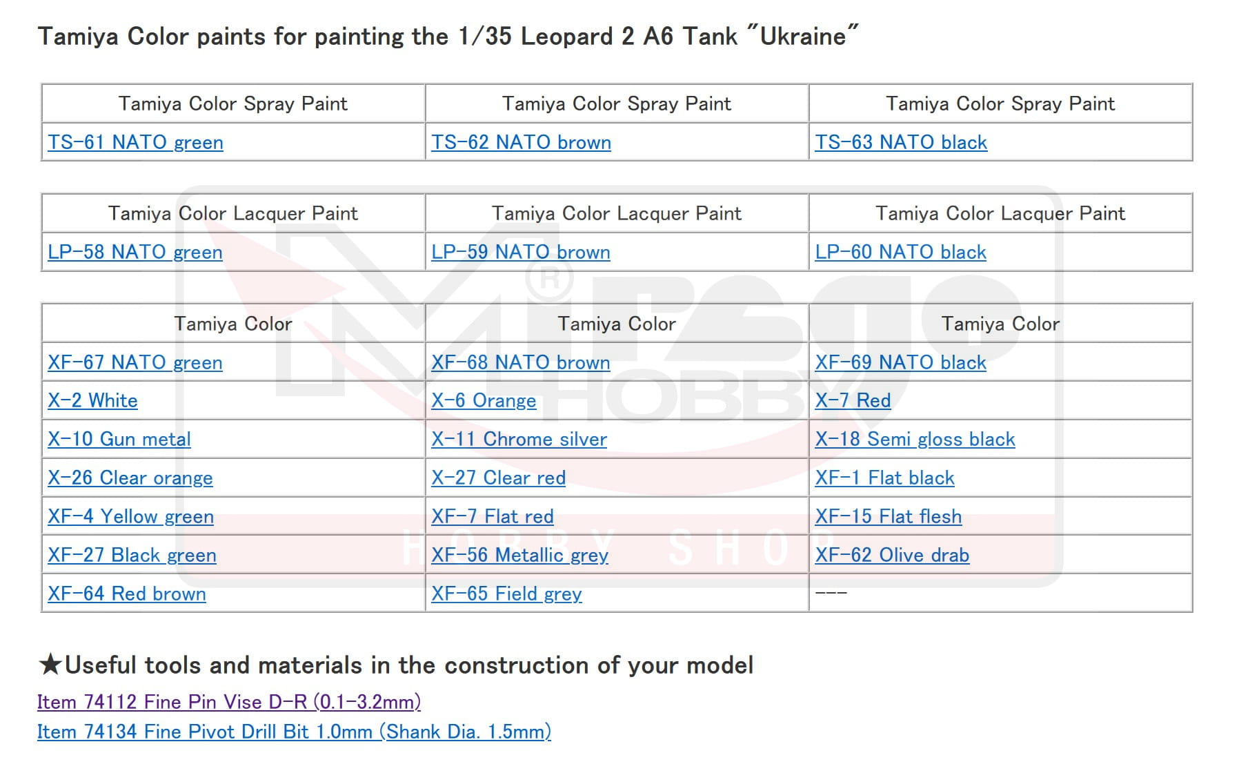 ★This is a 1/35 scale plastic model assembly kit. Length: 314mm, width: 107mm. ★The refined Leopard 2 A6 form with 120mm smoothbore gun is recreated in style. ★Distinctive turret front and side additional armor is authentically depicted. ★Clear parts are included to recreate headlights and taillights. ★Includes belt type depictions of tracks. ★Decals in this kit include Ukranian flags and the white cross, a symbol historically used in Ukraine as a symbol of victory.
