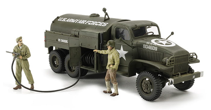 ★This is a 1/48 scale plastic model assembly kit of the U.S. 2 1/2ton fuel truck. ★Length: 136mm, width: 52mm. ★The model accurately captures the truck's large fuel tank and hard-top cab. ★The tank-side doors can be assembled in closed or open position, and parts are also included to depict the hose reel, with vinyl tubing and enamel wire to recreate the hose itself. ★Separate parts are included to recreate the tank-front pump. ★Comes with 2 figures depicted in the act of refueling, and also features 2 marking options for USAF vehicles.
