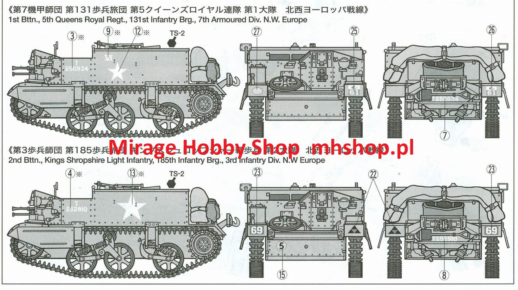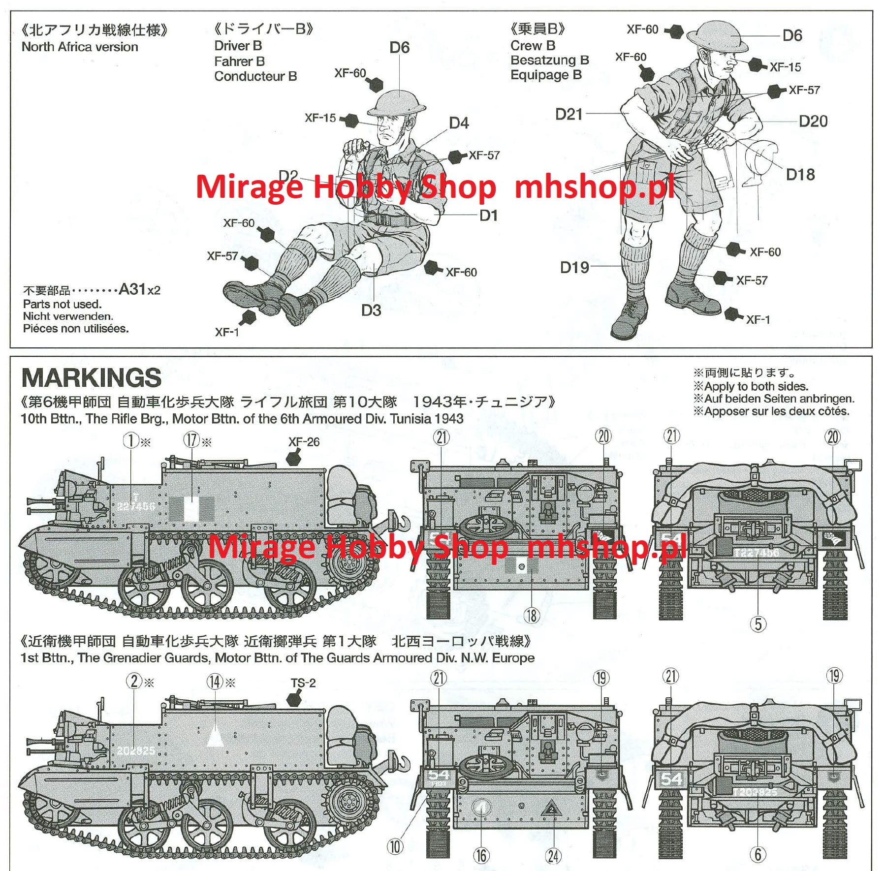 - Dołączone są również cztery rodzaje kalkomanii, które pozwalają na zobrazowanie Universal Carrier Mk.II na różnych polach bitwy, w tym w Afryce Północnej, Włoszech i Francji.