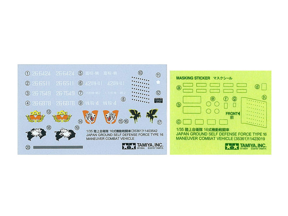 | About the Model ★This is a 1/35 scale plastic model assembly kit. Length: 241mm, width: 85mm. ★This accurate rendering of the Type 16 is based on extensive research of the actual vehicle. ★Authentically captures the modern silhouette with 105mm gun. ★Features crisp molding on fine details such as non-slip surface textures. ★Rubber tires have highly realistic tread pattern. ★An accurate depiction of the complex suspension features steerable front two axles moving in unison. ★Clear parts are used for lenses, periscope and more. ★Two torso figures recreate commander and gunner. ★Four marking options include the Armored Division at JGSDF Fuji School. |