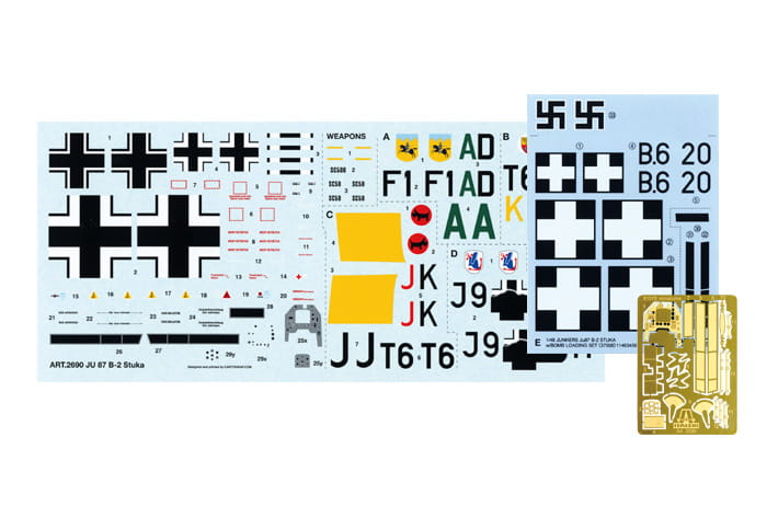 Bombowiec nurkujący Junkers Ju87 Stuka został opracowany w 1934 roku, a sceny, w których nurkowali na swoje cele, stały się synonimem niemieckiego Blitzkriegu. Spośród wielu wyprodukowanych wariantów Ju87 B był ostoją Lufwaffe we wczesnych latach II wojny światowej. Wytrzymały samolot miał odwrócone skrzydła mewy i stałe podwozie oraz był napędzany silnikiem Junkers Jumo 211D o mocy 1200 KM. Mógł precyzyjnie dostarczyć maksymalny ładunek bomby 1000 kg podczas nurkowania pod kątem 90 stopni, podczas którego jego syreny wyły, by przerazić wojska alianckie poniżej. Chociaż ponieśli ciężkie straty podczas Bitwy o Anglię, nadal z powodzeniem wykorzystywano je w innych teatrach, takich jak Morze Śródziemne, Rosja i Bałkany.