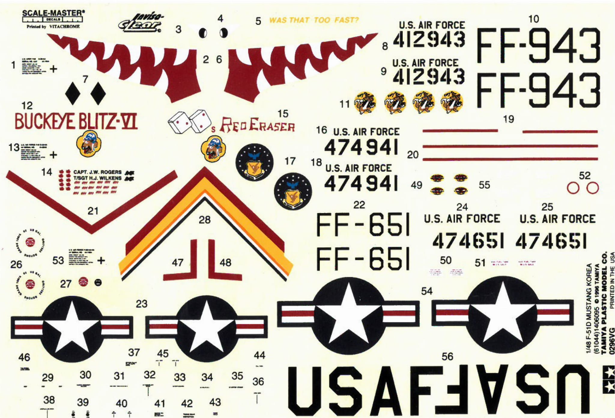 Dzięki doskonałej równowadze między dużą prędkością, zasięgiem i zwrotnością, P-51D Mustang był przez wielu uważany za najlepszego myśliwca z silnikiem tłokowym II wojny światowej. Po wojnie Siły Powietrzne USA stały się niezależną jednostką, a oznaczenie P-51D również zmieniono na F-51D. Samolot był nadal w służbie, gdy wybuchła wojna koreańska, a ten zestaw przedstawia samolot, który brał udział w tym konflikcie.