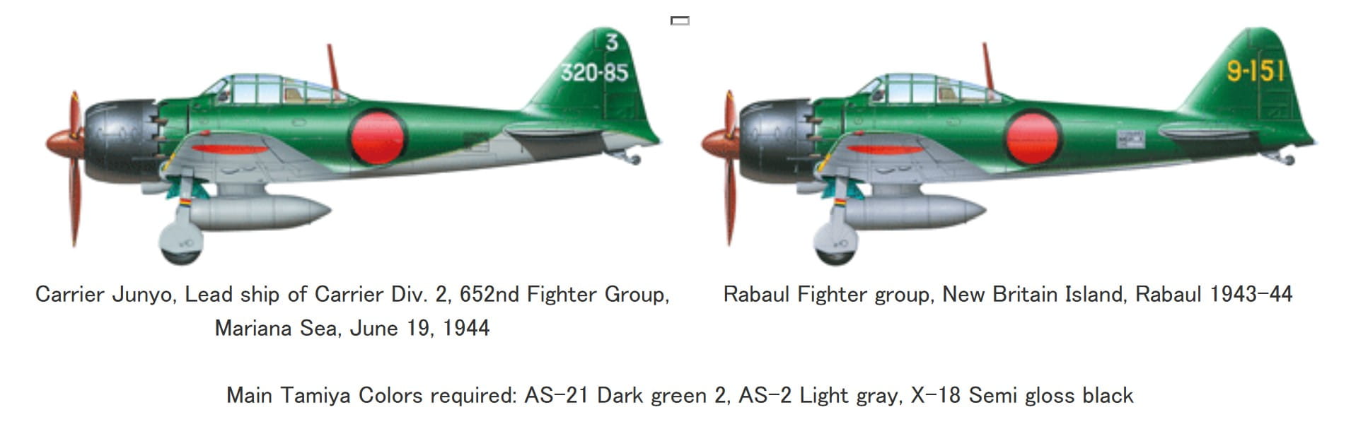 The Mitsubishi A6M Zero was the Japanese Navy’s main fighter throughout the course of WWII. In the latter half of the war, the Model 22 was refined to create the Model 52 to counter new U.S. aircraft such as the P-38 Lightning and F4U Corsair. It featured 50cm shorter wings with rounded wingtips, individual exhaust pipes and top speed of 565km/h. A6M5a was produced with a larger capacity (125 rounds) belt-type cannon ammunition system in February 1944. The Model 52 first saw action during the closing stages of the Solomons campaign in the autumn of 1943 and went on to fight in the skies above the Marianas, Iwo Jima, Okinawa, as well as Japan itself, until the end of the war.
