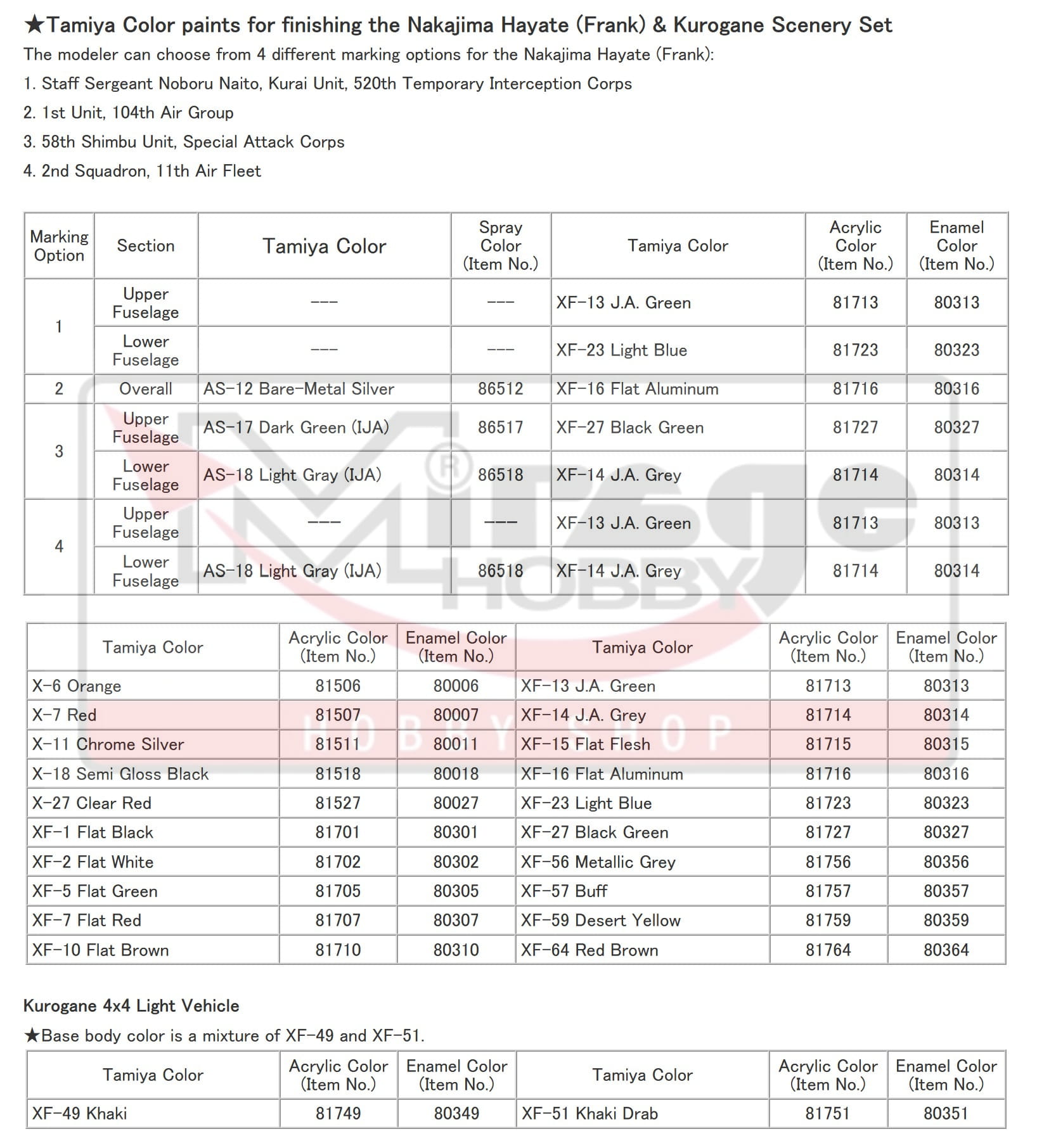 TAMIYA 61116 1:48 HAYATE & KUROGANE