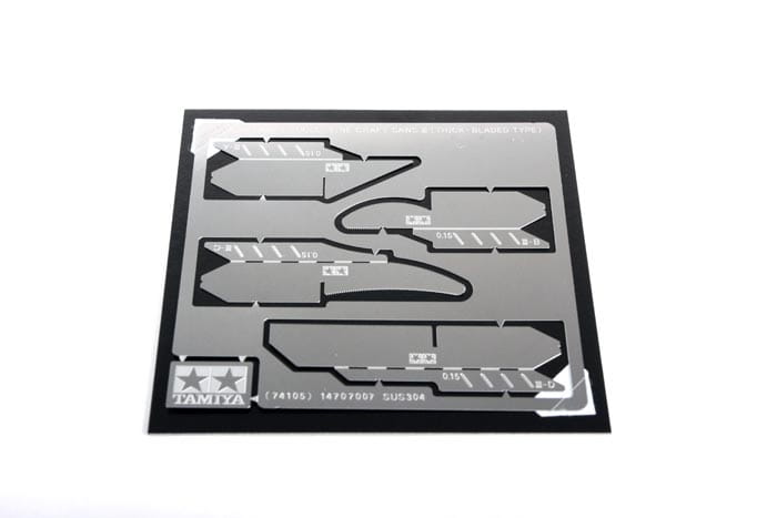 W niektórych sytuacjach cięcie wykonane zwykłą piłą modelarską może być zbyt szerokie, co prowadzi do niepożądanych zmian długości części. Ten zestaw pił rozwiązuje ten problem, ponieważ są wykonane z metalu trawionego o grubości 0,15 mm. Uchwyty pił można złożyć i przymocować do noża modelarskiego (art. 74040) w celu precyzyjnej kontroli cięcia. W zestawie znajdują się cztery rodzaje brzeszczotów, które można wykorzystać w różnych sytuacjach.
