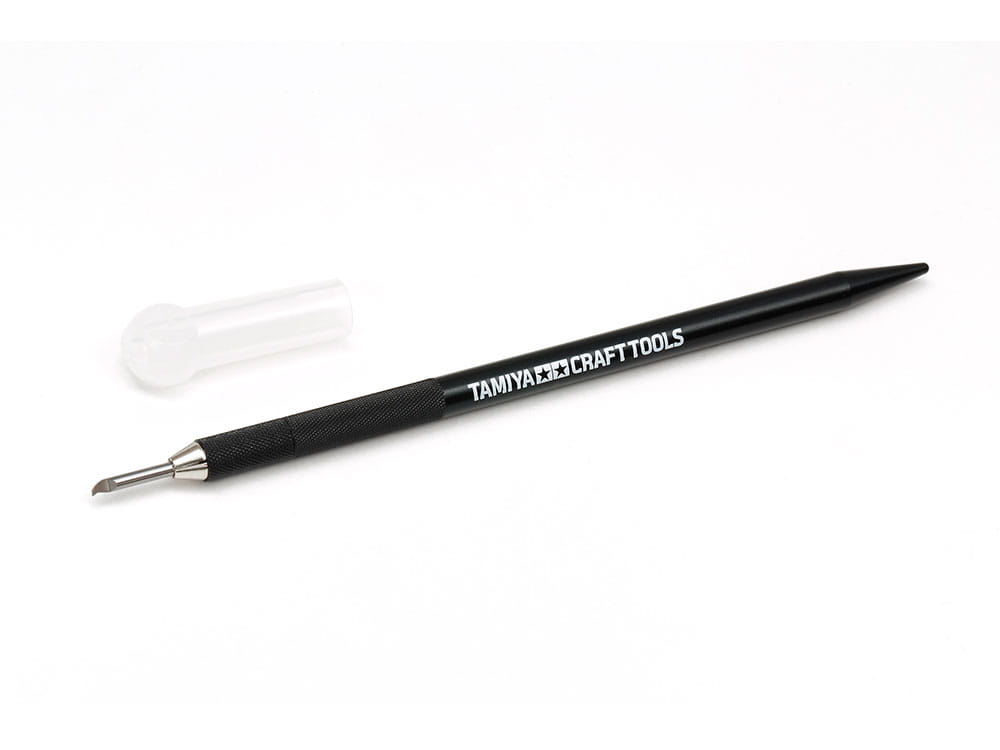 Ten aluminiowy uchwyt jest przeznaczony do użytku z ostrzami do drobnego grawerowania Tamiya. Jest również kompatybilny z ostrzami noży Tamiya Design.