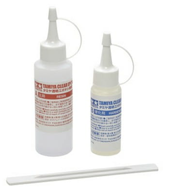 Żywicę można również mieszać z farbami Tamiya Color, aby uzyskać jeszcze bardziej kreatywne możliwości. Obie butelki są wyposażone w wygodne dysze, a do zestawu dołączone jest poręczne narzędzie do mieszania.