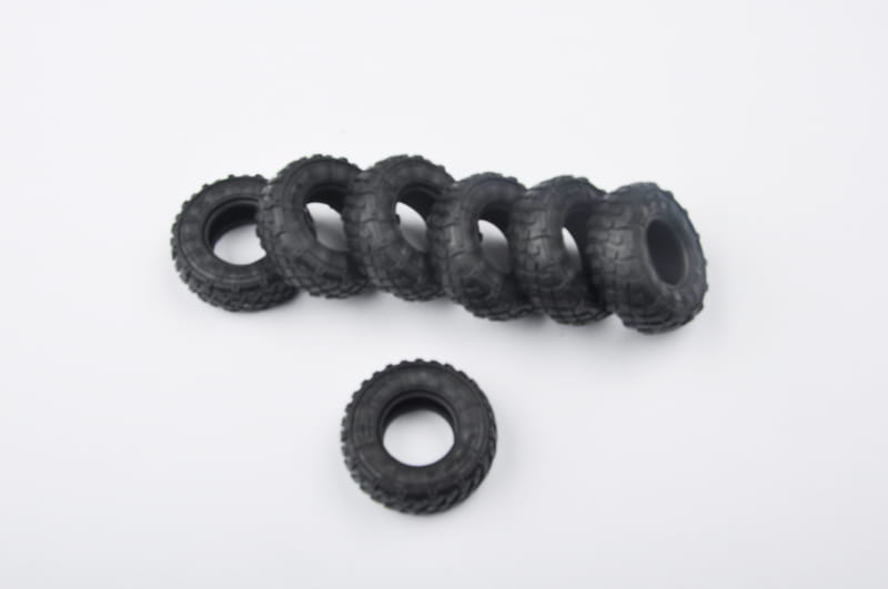 Full drive train assembly complete with engine transmission, differential housing and suspension units.The main tires are hollow rubber with very good tread pattern included as well as sidewall details consisting of raised section ribs.