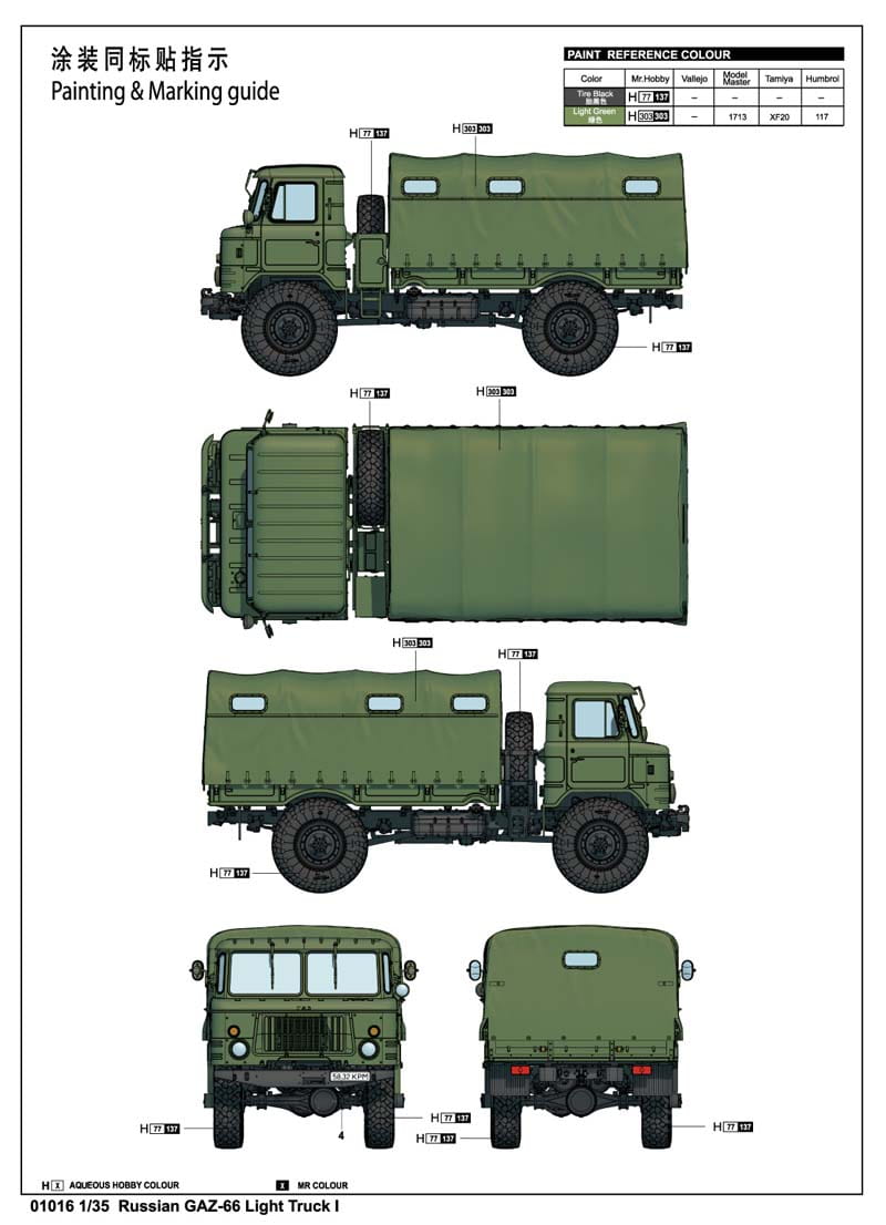 TRUMPETER 01016 1:35 Russian GAZ-66 Light Truck I