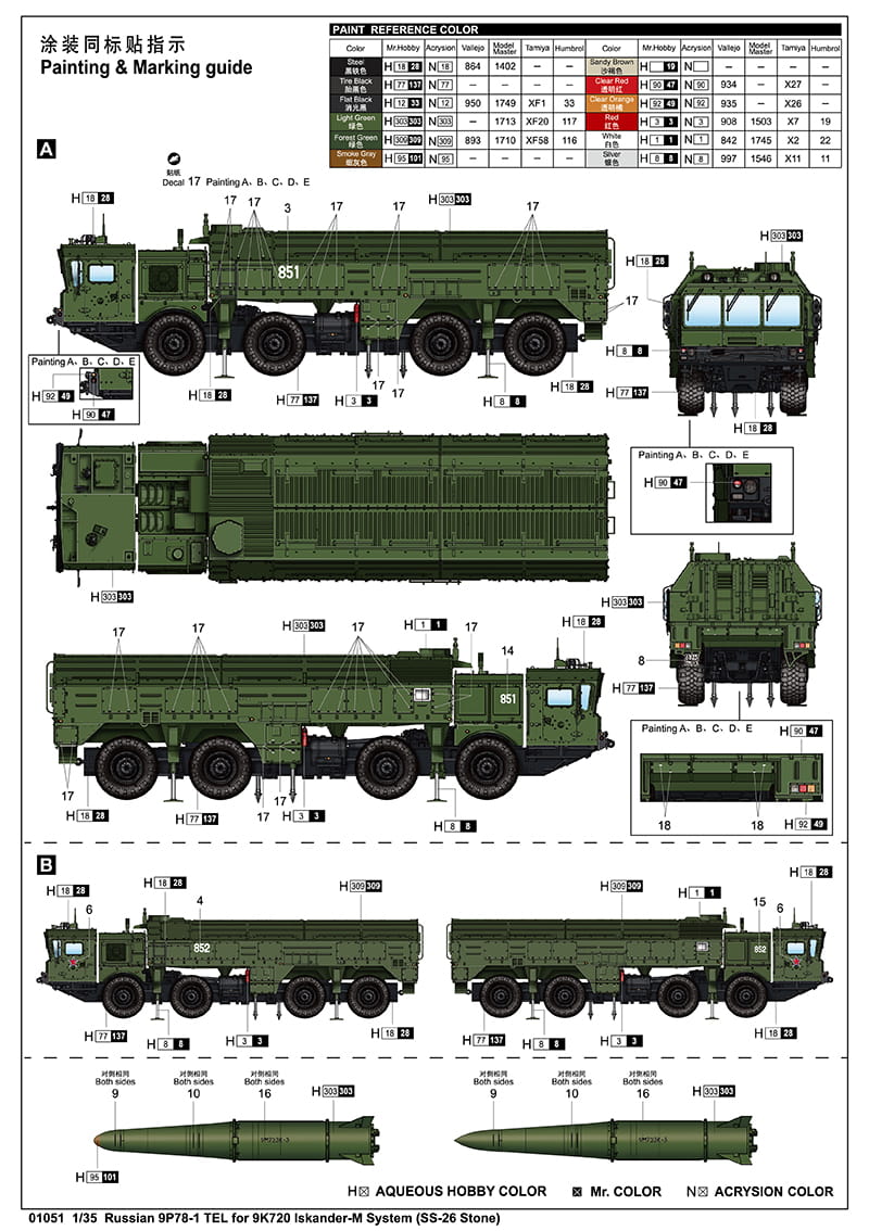 TRUMPETER 01051 1:35 Russian 9P78-1 TEL for 9K720 Iskander-M System (SS-26 Stone)