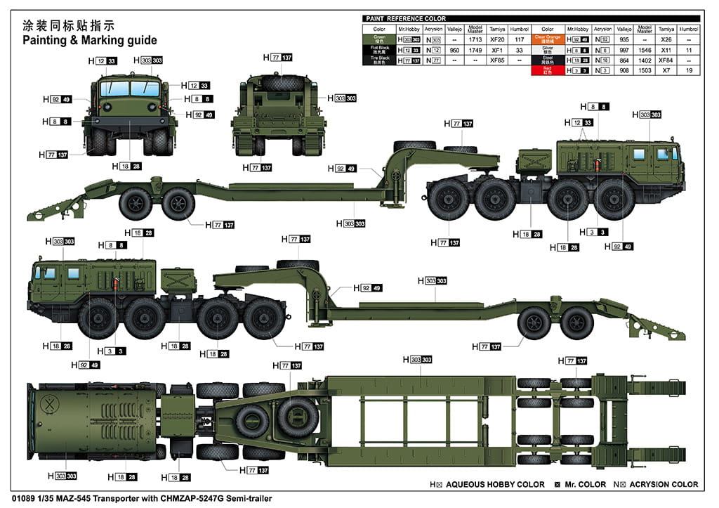 TRUMPETER 01089 1:35 MAZ-545 Transporter with CHMZAP-5247G Semi-trailer