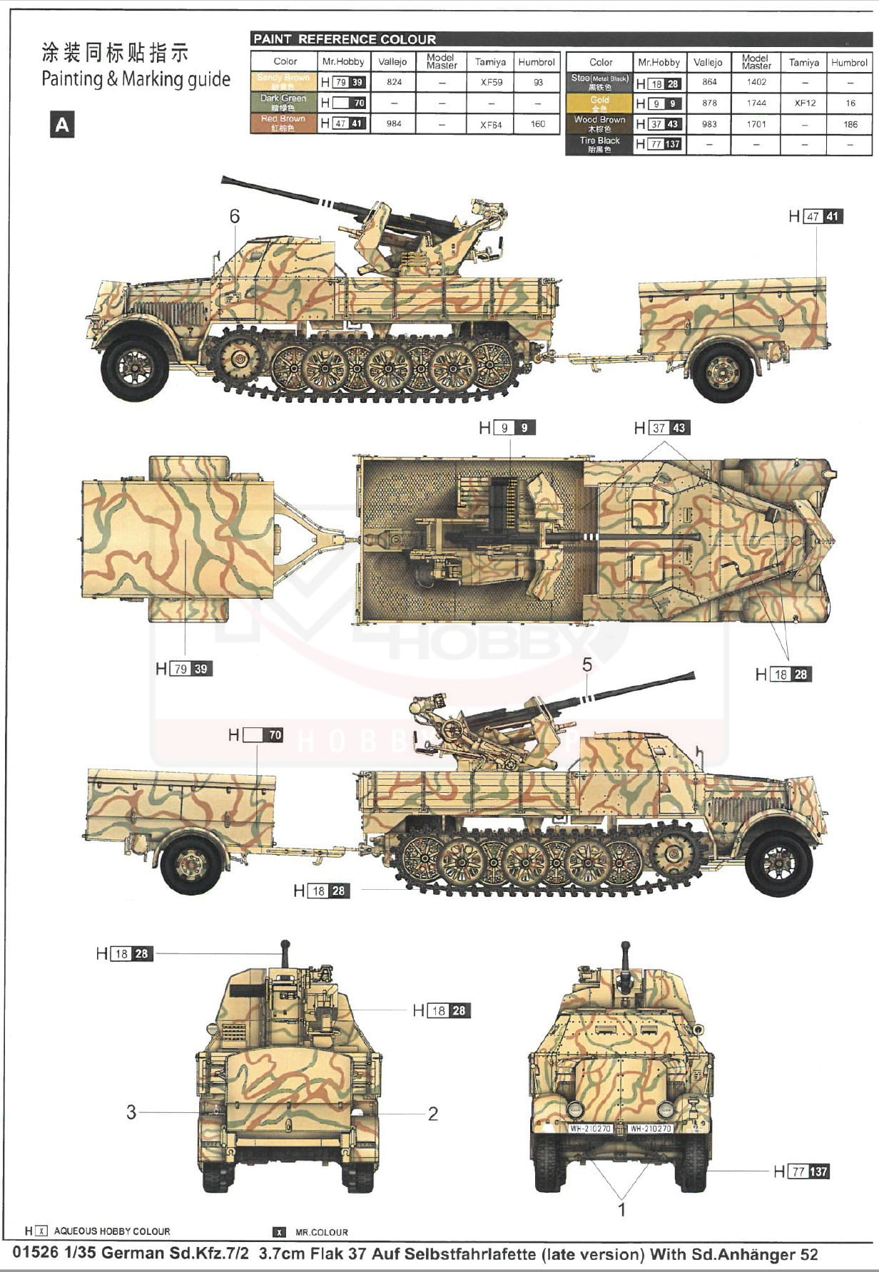 TRUMPETER 01526 1:35 German 3.7cm Flak 37 auf Selbstfahrlafette (Sd.Kfz.7/2 late version)
