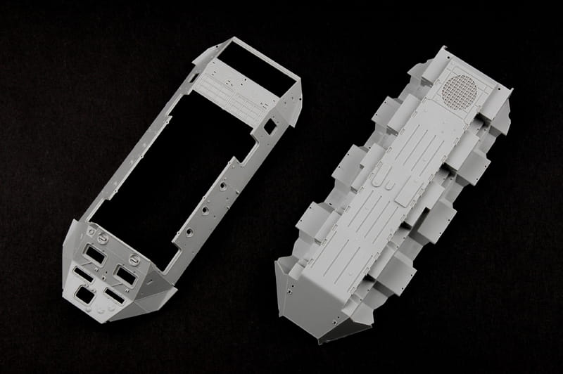 - Kadłub dolny i kadłub górny wykonane z wielokierunkowych form ślizgowych
