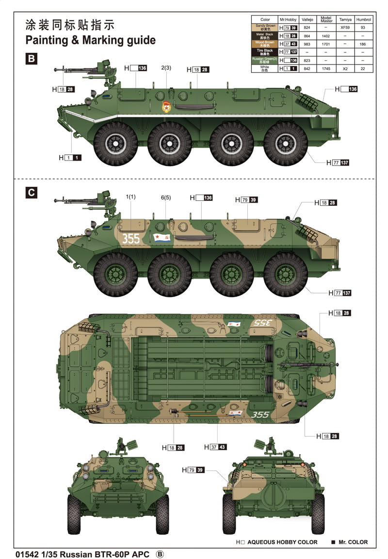 TRUMPETER 01542 1:35 Soviet BTR-60P APC Armored Personnel Carrier