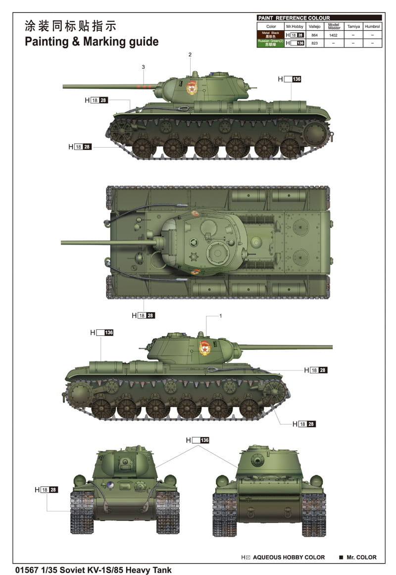 TRUMPETER 01567 1:35 Soviet KV-1S/85 Heavy Tank