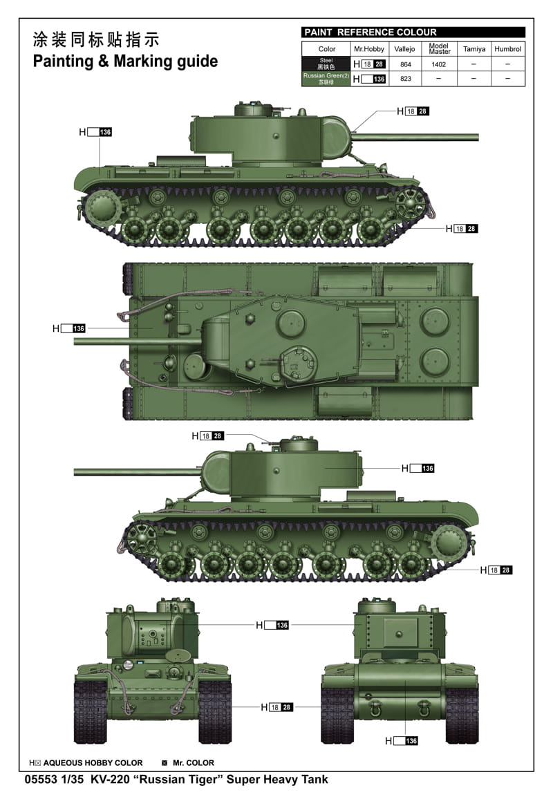TRUMPETER 05553 1:35 Soviet KV-220 Heavy Tank "Russian Tiger"