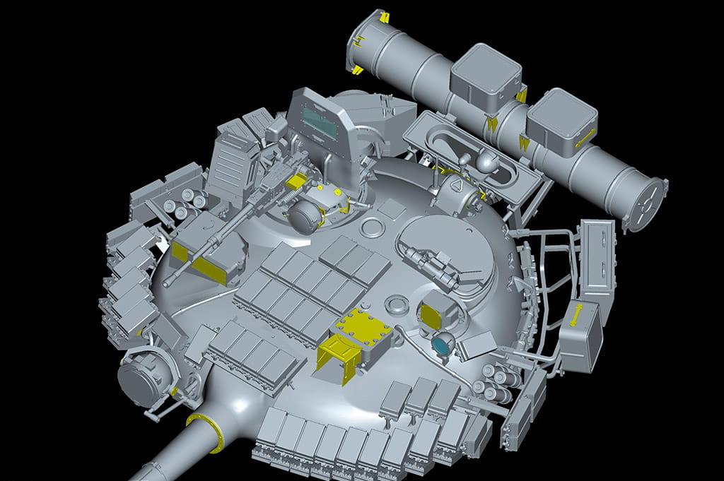 T-80B had a new turret, fire-control, and autoloader allowing the firing of 9M112-1 Kobra antitank guided missile, and improved composite armour. An improved 1,100-hp engine was added in 1980, a new gun in 1982, T-80BV fittings for reactive armour in 1985. Reactive armor adds protection for 400mm equivalent armor to defend against HEAT warheads.