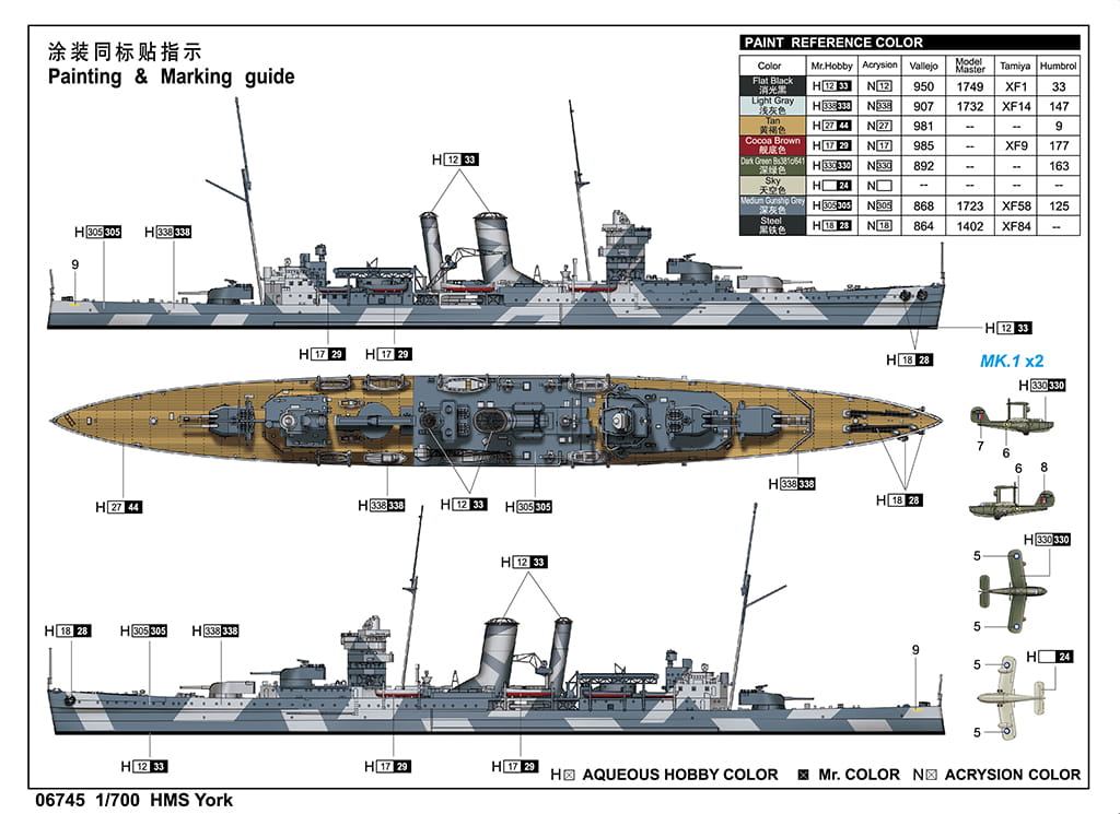 Heavy cruiser HMS York is the British Royal Navy during World War II York class heavy cruiser of the first ship.In September 1939 after the outbreak of war as a cover transportation fleet tasks, October attacked the ship began to hunt for Germany, in April 1940 to participate in the transport army troops to Norway Norway campaign. March 1941 cover transportation Army's fleet arrived in Crete Suda Bay, on the 25th night in Suda Bay, two Italian navy blasting boats were hit led to its loss of combat effectiveness. To avoid sinking, the British Navy drag stranded on the sandbar. Because still can not be repaired, only when using air defense fort, after the Luftwaffe bombed wreckage until after the war between Britain and Greece negotiated only in Greece demolished.