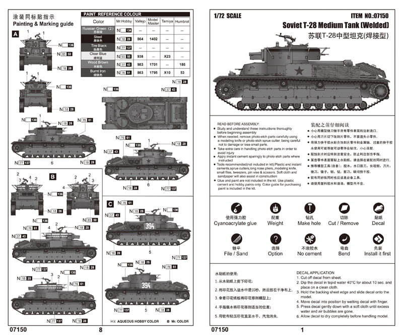 TRUMPETER 07150 1:72 Soviet T-28 Medium tank ( Welded )