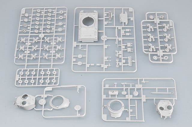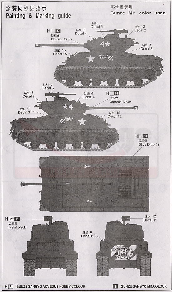 Podczas konfliktu koreańskiego czołgi średnie M4A3 brały udział głównie w wersji E8 z systemem HVSS (horixontal volute spring suspension). Niektóre były kolorowo oznaczone i miały tygrysie twarze w różnych formach namalowane na przodzie pojazdu. Te późne M4A3E8 miały pewne różnice w porównaniu z wersją z II wojny światowej. Telefon polowy został dodany po prawej stronie tylnej płyty i apteczka po lewej stronie kadłuba. Na tym etapie większość M4 dodała plandekę przeciwdeszczową na jarzmie działa. Ponieważ zawiasy ciężkich, kratowanych drzwi dostępu do silnika były zbyt łatwe do uszkodzenia, w M4A3 wprowadzono nowe i wytrzymałe zawiasy, które pojawiły się również w niektórych koreańskich wersjach konfliktowych M4A3E8. Zestaw zawiera wszystkie te cechy koreańskiego konfliktu M4A3E8. Dostarczane są oba rodzaje pokładów silnikowych w wersji E8.