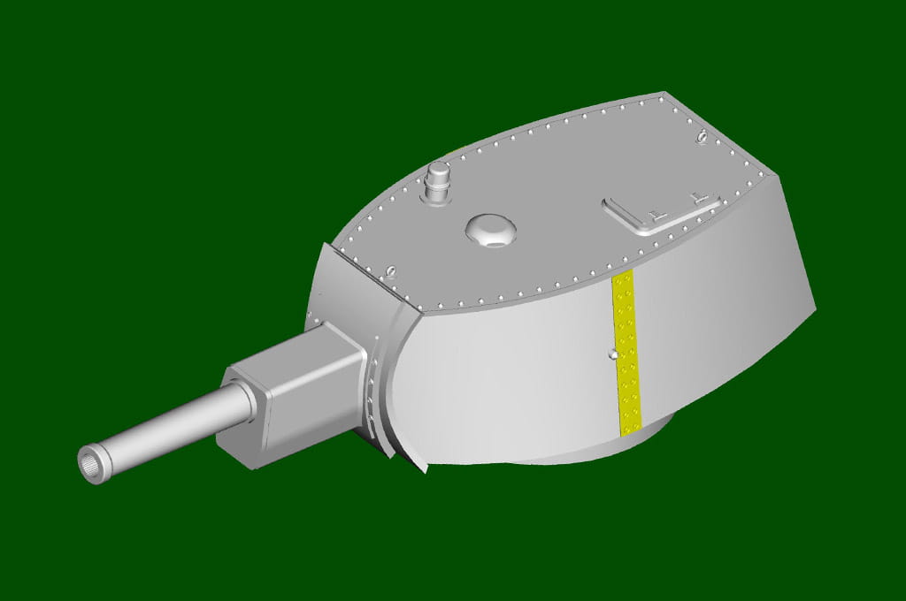 The T-100 tank had two turrets one in front of the other requiring a long chassis. The front turret, mounting a 45 mm anti-tank gun had a limited area of fire due to the second turret behind. The second turret, mounting a 76.2 mm gun, was set taller on top of the superstructure than the first and so able to turn a full 360 degrees.