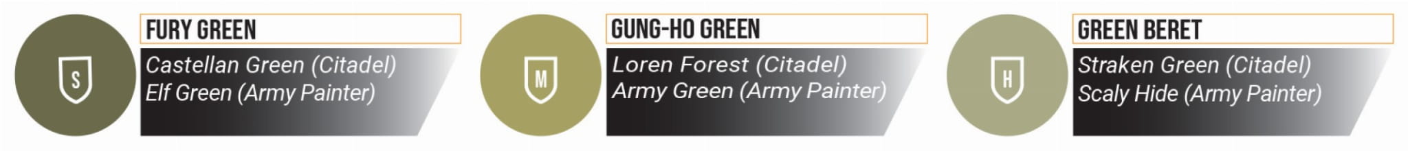 Farby Two Thin Coats zostały zaprojektowane w układzie triadowym. Oznacza to, że zaczynasz od koloru cienia (shadow), następnie tonu średniego (midtone), a na końcu rozjaśnienia (highlight). Oczywiście możesz ich używać w dowolny sposób i zmieniać je w zależności od stylu i gustu.