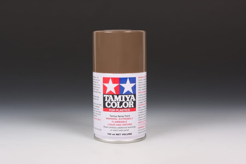Farba w sprayu Tamiya TS to lakier syntetyczny, który utwardza się w krótkim czasie. Farba w sprayu jest niezwykle przydatna do malowania dużych powierzchni modelu. Farby w aerozolu Tamiya nie mają wpływu na farby akrylowe ani emaliowane. Dlatego po pomalowaniu całego zestawu można dodawać lub wybierać detale za pomocą farb emaliowych i / lub akrylowych.