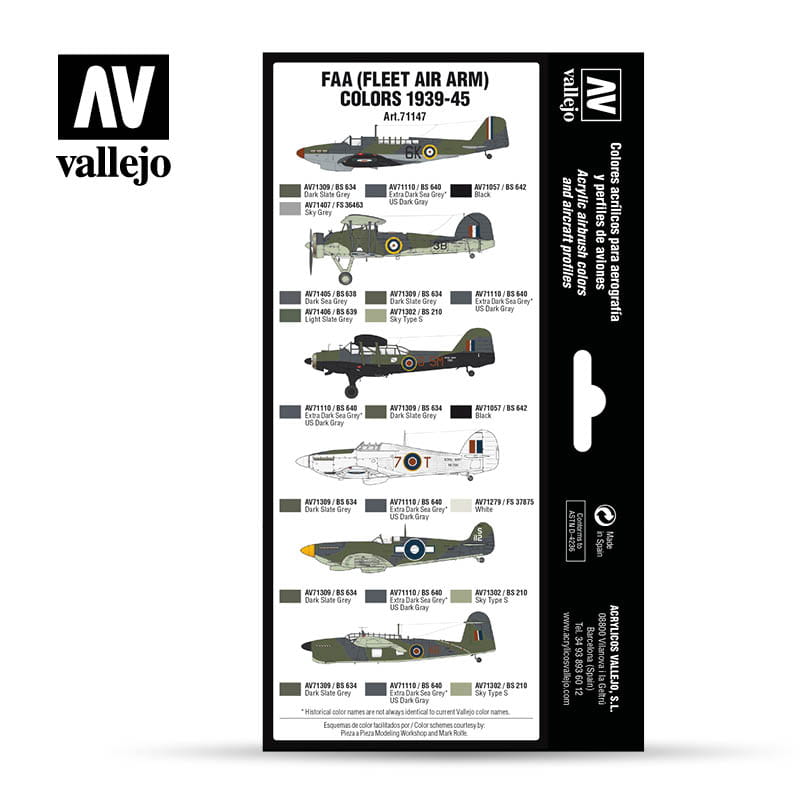 Zestaw kolorów Model Air opracowany do malowania samolotów Fleet Air Arm (FAA) floty brytyjskiej, dla samolotów lądowych lub zaokrętowanych na lotniskowcach od 1939 do końca II wojny światowej, brytyjskich lub amerykańskich.
