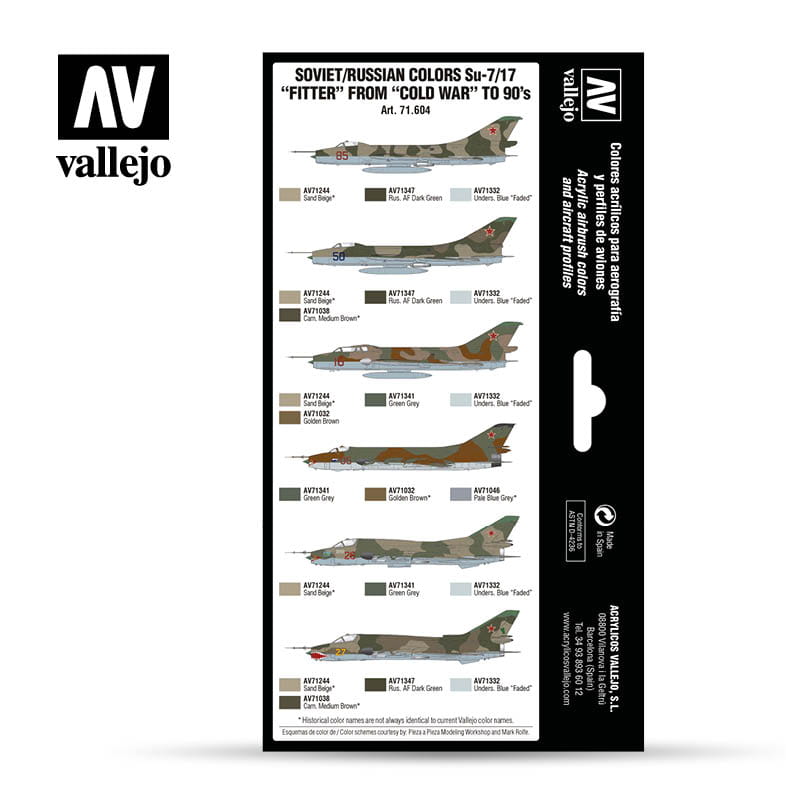 Zestaw z kolorami Model Air opracowanymi do malowania różnych modeli Sukhoi Su-7 „Monter” i ulepszonego Su-17 radzieckich sił powietrznych podczas „zimnej wojny”. W zestawie znajdują się profile samolotów, oznaczenia potrzebnych kolorów oraz szczegółowy opis ich zastosowania.