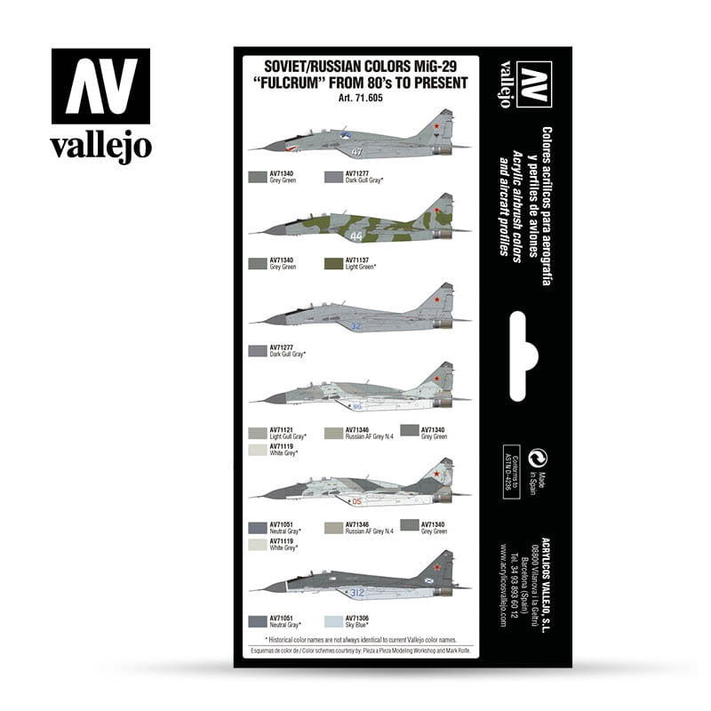 VALLEJO 71605 Soviet/Russian colors MiG-29 “Fulcrum” from 80’s to present [PAINT SET]