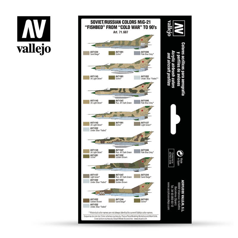 VALLEJO 71607 Soviet/Russian colors MiG-21 “Fishbed” from 50’s to 90’s [PAINT SET]