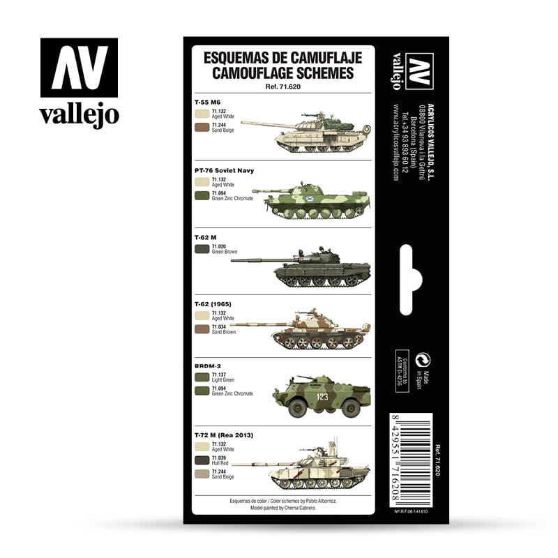 Ten zestaw zawiera wybór kolorów do malowania wzorów kamuflażu współczesnych radzieckich wozów bojowych. Zawarte odniesienia do kolorów są oficjalnymi kolorami URSS i obejmują wzory kamuflażu używane obecnie w pojazdach AFV.