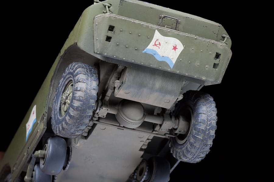 BRDM-2 to opancerzony pojazd rozpoznawczy opracowany przez Gorky Automobile Plant i produkowany w latach 1964-1989 w ZSRR, na licencji produkowany w Polsce, Czechosłowacji i Jugosławii. Pancerz pojazdu jest skuteczny tylko przeciwko lekkiej broni, ale ma dobre właściwości terenowe, co jest ważne w roli zwiadowcy. Aby pokonać rowy i okopy, dodano małe dodatkowe koła na środku nadwozia. Na dobrych drogach BRDM-2 może osiągnąć prędkość do 100 km / h. Silnik odrzutowy zapewnia samochodowi pojemność amfibii. BRDM-2 jest uzbrojony w ciężki 14,5-mm karabin maszynowy KPVT w obrotowej wieży i współosiowy karabin maszynowy PKT Kałasznikow 7,62 mm. Pociski przeciwpancerne zapalające KPVT są skuteczne przeciwko lekkim pojazdom opancerzonym. Podczas jego długiego okresu produkcyjnego wprowadzono różne zmiany i ulepszenia. Wyprodukowano ponad 7200 BRDM-2 na uzbrojeniu ZSRR i sojuszników. Wiele z tych samochodów pancernych jest nadal używanych w Rosji i kilku innych krajach na całym świecie.
