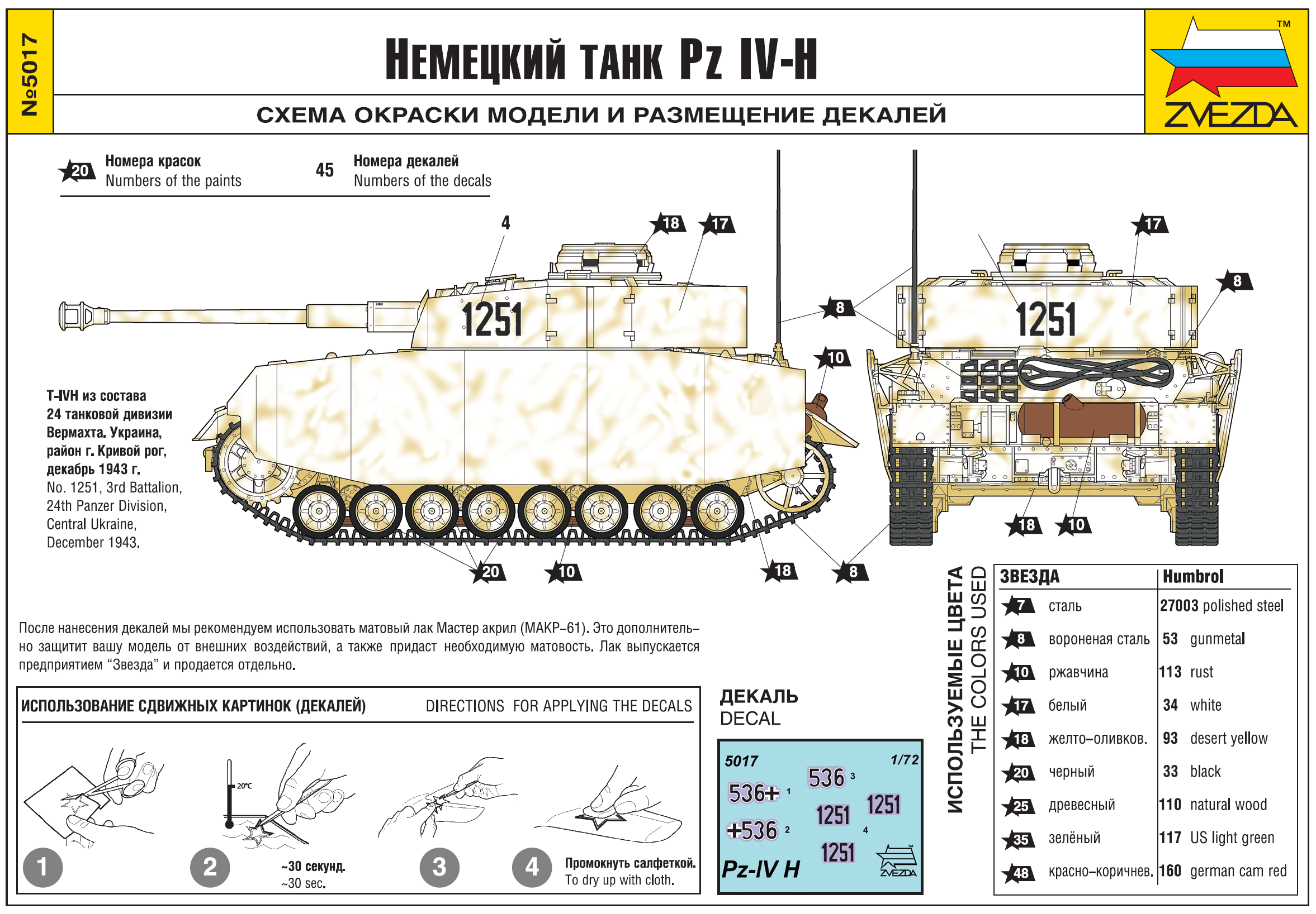 ZVEZDA 5017 1:72 Panzer IV Ausf.H German Medium Tank