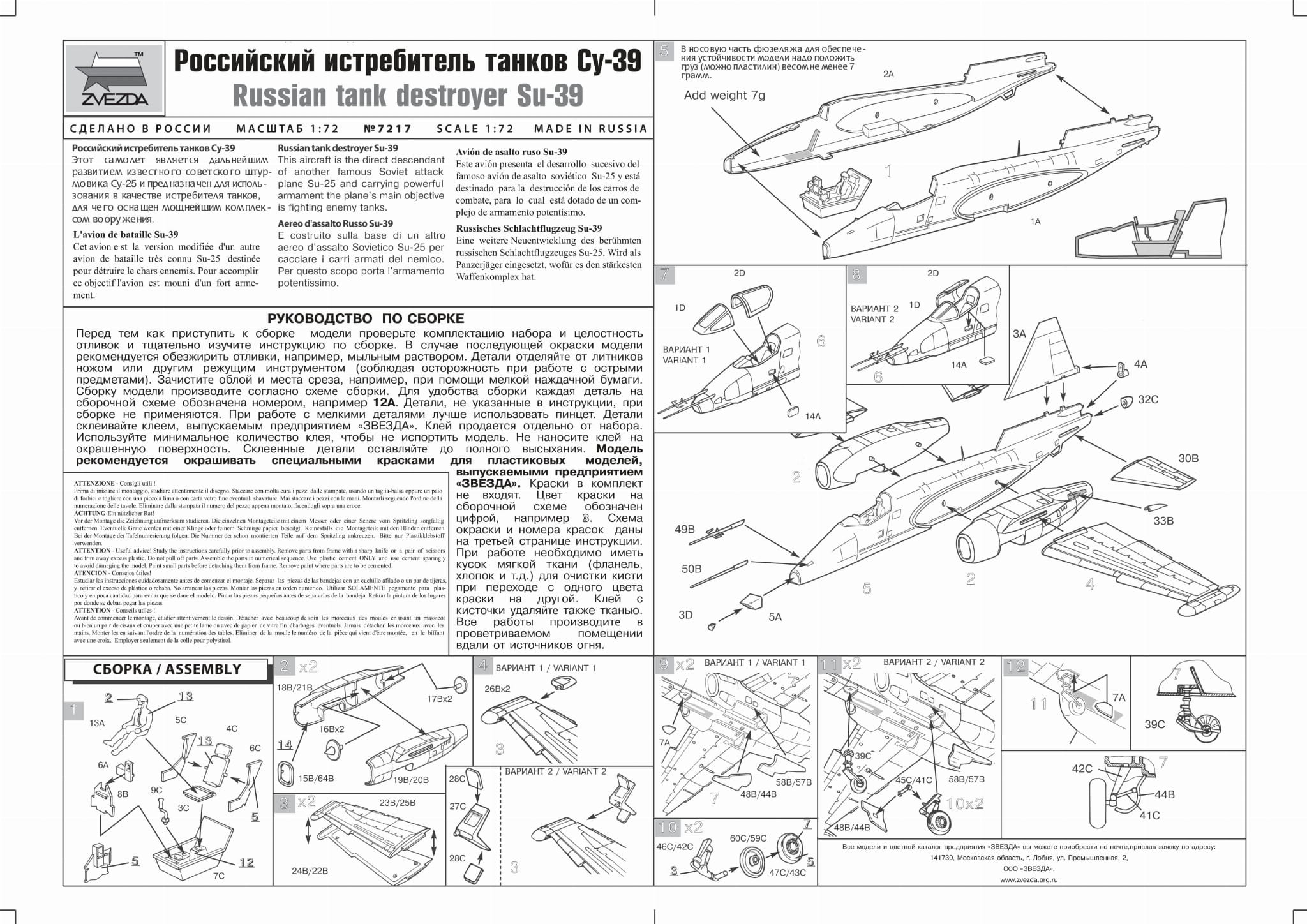 ZVEZDA 7217 1:72 Russian Tank Destroyer Su-39 Frogfoot
