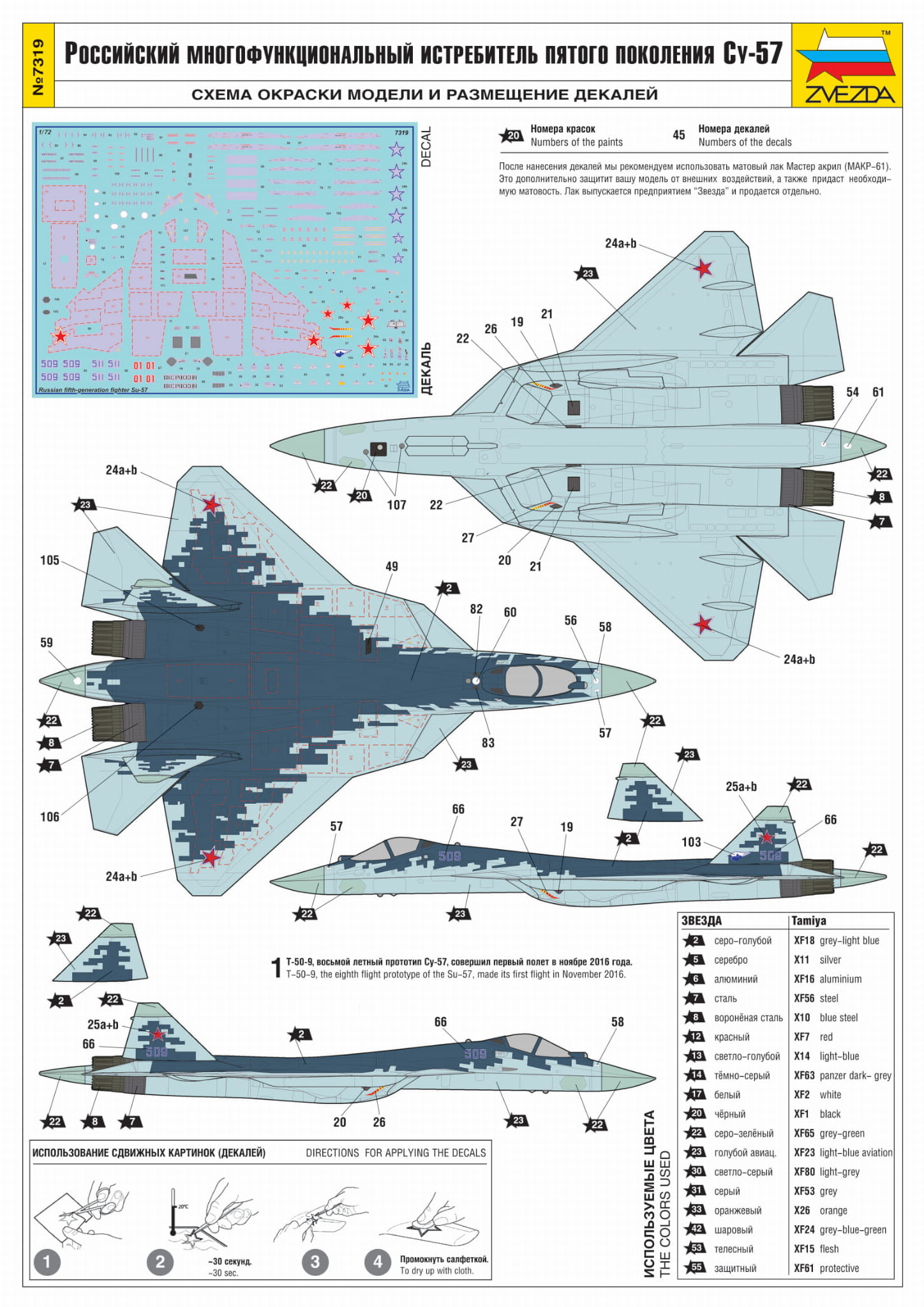 ZVEZDA 7319 1:72 Sukhoi Su-57 Russian Fifth-Generation Fighter