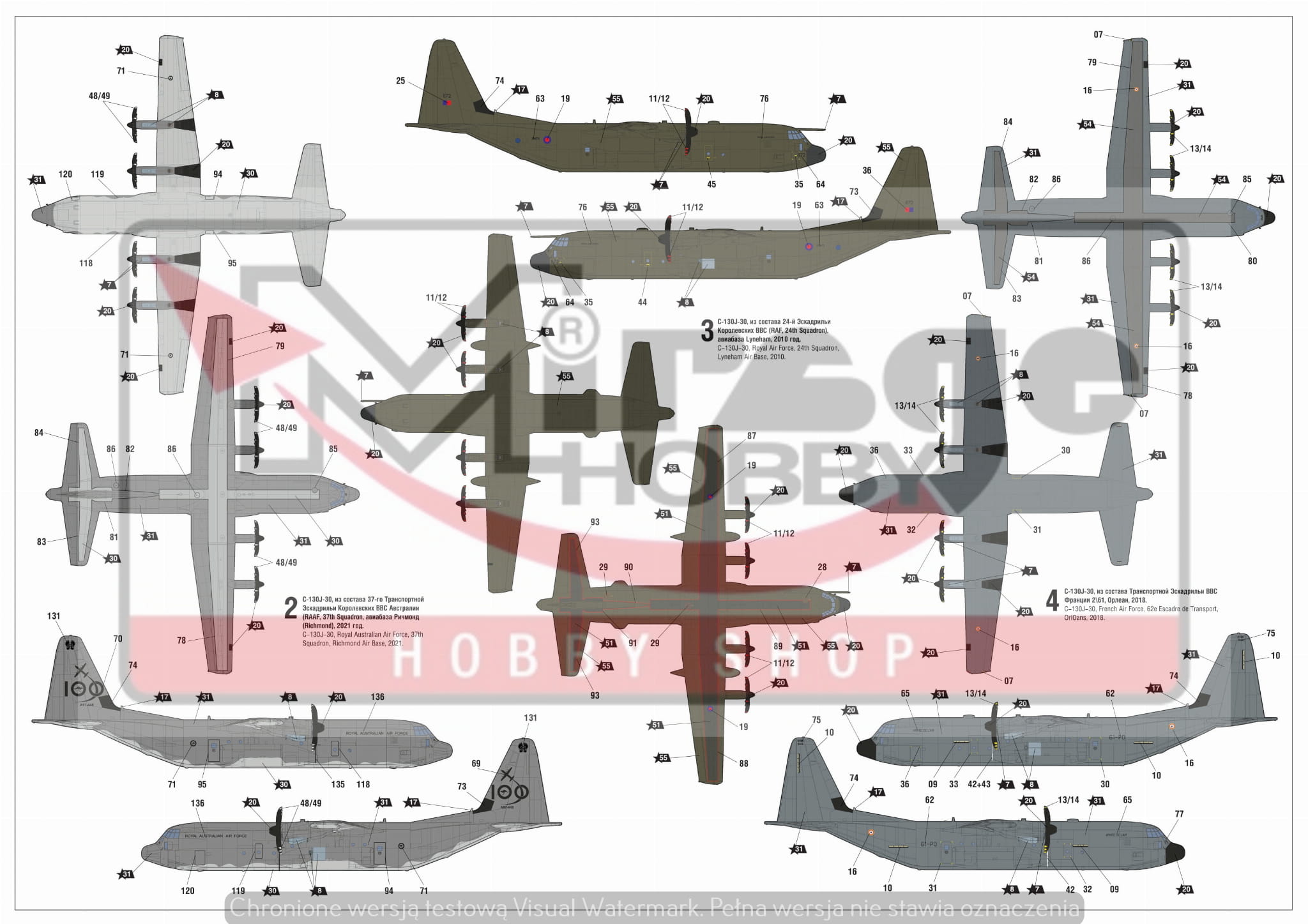 Amerykański C-130J to czterosilnikowy, turbośmigłowy wojskowy samolot transportowy. Jest to modernizacja C-130H z mocniejszymi silnikami RR AE 2100 i 6-łopatowymi śmigłami scimitar, nowym układem hamulcowym i dwumiejscową kabiną z pokładowym elektronicznym oprzyrządowaniem (EFIS). Do lipca 2021 roku 450 wersji J zostało dostarczonych klientom w 22 krajach. C-130J-30 to rozciągnięta wersja C-130J, sprawdzonego, wysoce niezawodnego i niedrogiego podnośnika powietrznego. Kadłub jest wydłużony o 4,6m, zwiększając powierzchnię użytkową (dwie kolejne palety sprzętu) w przedziale ładunkowym. Może przewozić max. 128 żołnierzy w odległości 4200 km.