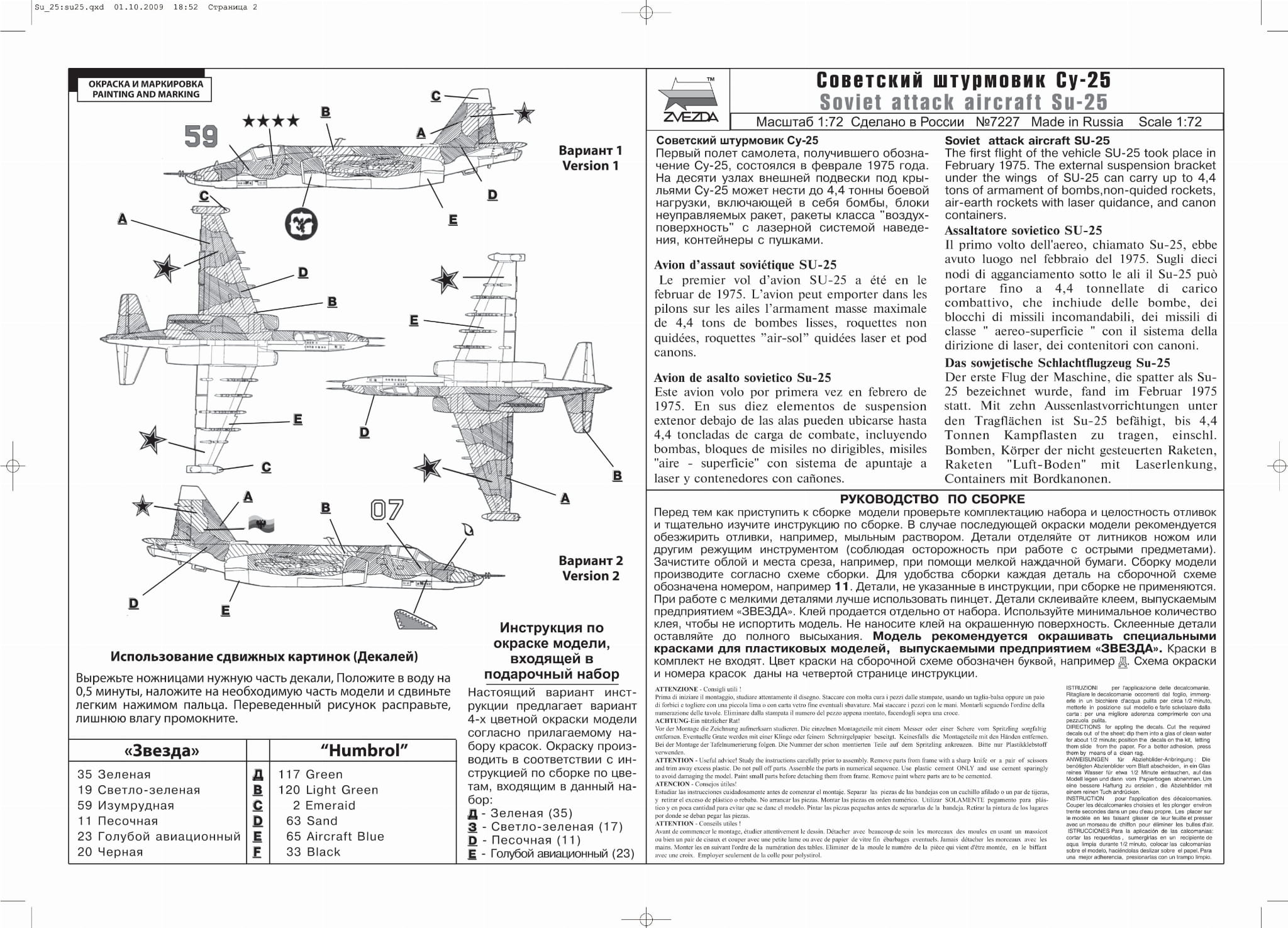 Zvezda 7227 1:72 SOVIET GROUND-ATTACK AIRCRAFT SU-25